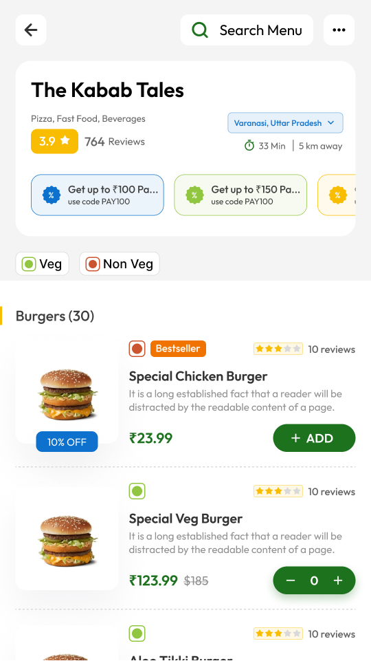 Our app offers a simple and user-friendly ordering process, allowing users to quickly and easily place their orders on the go. You can make payment with a single tap.